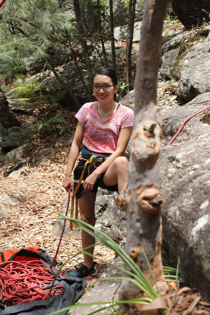 Outside of the band Geli is a student and rock climber who sets climbs at the local gym.